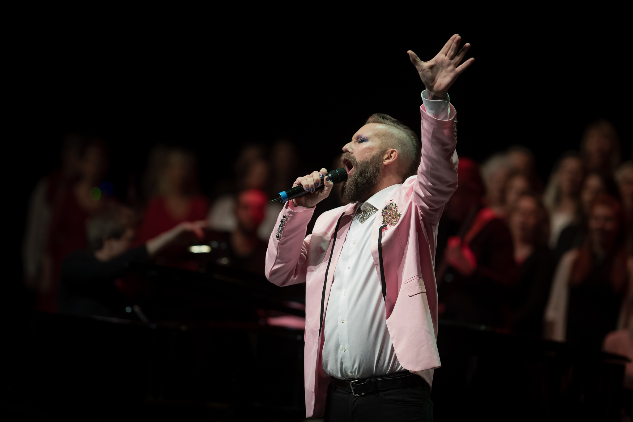 Fantastisk scennärvaro och härlig kontakt både bakåt och framåt, kör och publik.